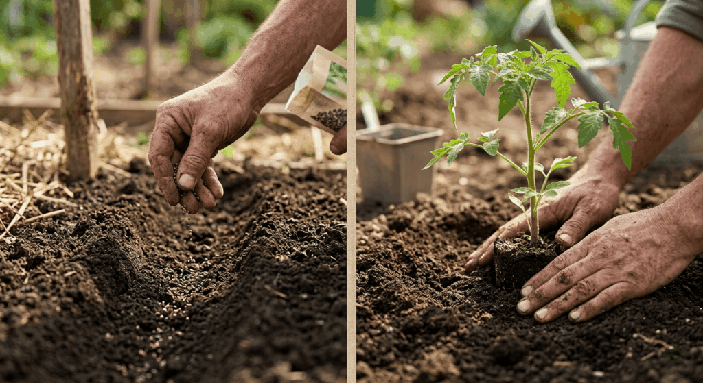 Piantare (o più correttamente trapiantare) significa mettere a dimora nel terreno una pianta che ha già superato le prime fasi critiche della vita, solitamente cresciuta in un vasetto o in un alveolo. Quando “piantiamo”, stiamo effettivamente trasferendo un organismo già strutturato, con un apparato radicale formato e le prime foglie vere (non solo i cotiledoni). Questo metodo è il preferito da chi cerca risultati immediati o da chi coltiva in zone con estati brevi. Il vantaggio competitivo è enorme: piantando una piantina di pomodoro di 20 cm, si guadagnano circa 4-6 settimane rispetto alla semina, riducendo drasticamente il tempo di esposizione a parassiti del suolo e malerbe che potrebbero soffocare un germoglio minuscolo.